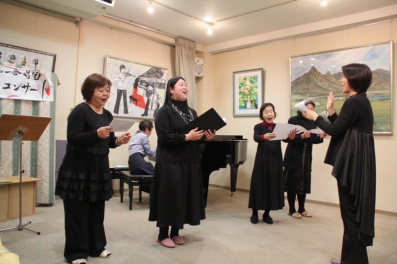 是非毎年開催したいとの意見が多く出されました。 ・先生方に対するねぎらいの言葉も多くあり、納多先生が早くから来ていただき 寒い廊下でコメントを出演者全員に書いていただき大変励みになった、 富田先生には、4回出演者との音合わせ、指導を受け当日は、一人で全員の伴奏を していただき有難うございました。 ・各パ−トとも自主的に特別練習を組み技術的な面とパートのまとまりが出来た。 ・定期練習では、分からない個人の良いところが分かった。 ・サモックホ−ルが今後使えないので、他のホール・会場を皆で探しましょう!